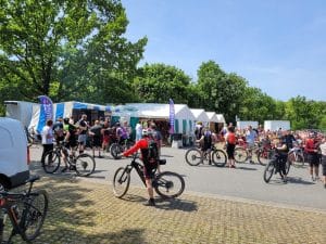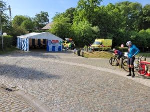 Un dรฉpart depuis le centre sportif, en musique, oรน toutes les commoditรฉs sont disponibles, un chapiteau avec son bar et sa petite restauration, mais aussi sa terrasse, un bike wash, des vestiaires et douches, un atelier mรฉcanique pour vous aider si besoin.